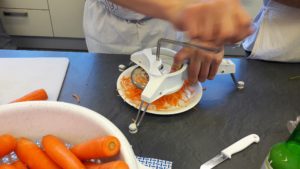 Als Hauptgericht kochten die Gäste „Chili sin Carne“ mit Sojagranulat und Grünkernschrot als „Hackfleischersatz“, dazu gab es gebackene mediterrane Polentaschnitten und polnischen Karottensalat.