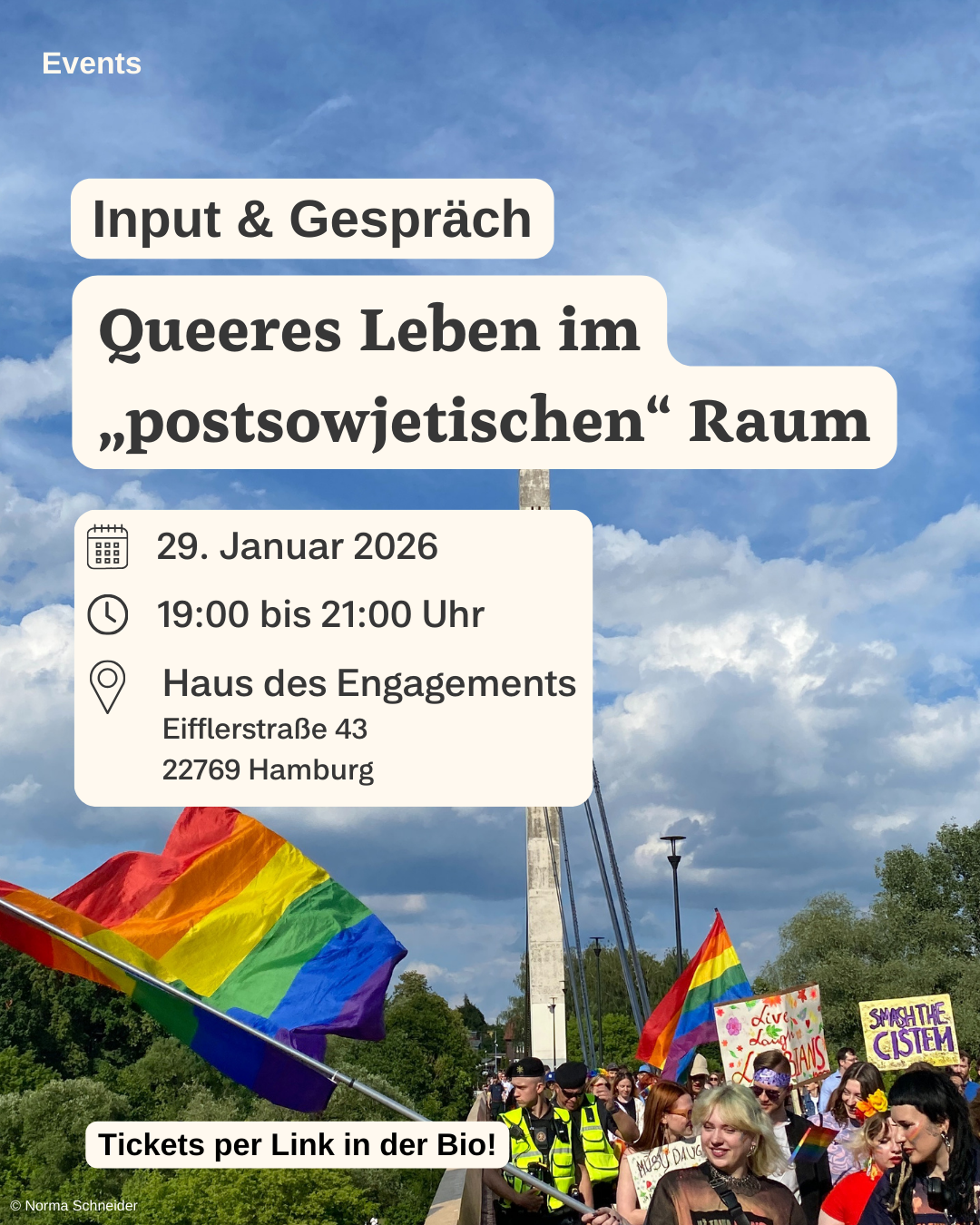 Haus des Engagements Eifflerstraße 43, HamburgIm sogenannten postsowjetischen Raum ist Queerfeindlichkeit weit verbreitet und Mitglieder der LGBTQIA*-Community sind häufig Diskriminierung und Angriffen ausgesetzt. Doch die Unterschiede zwischen den einzelnen Ländern sind groß: Während in Usbekistan […]