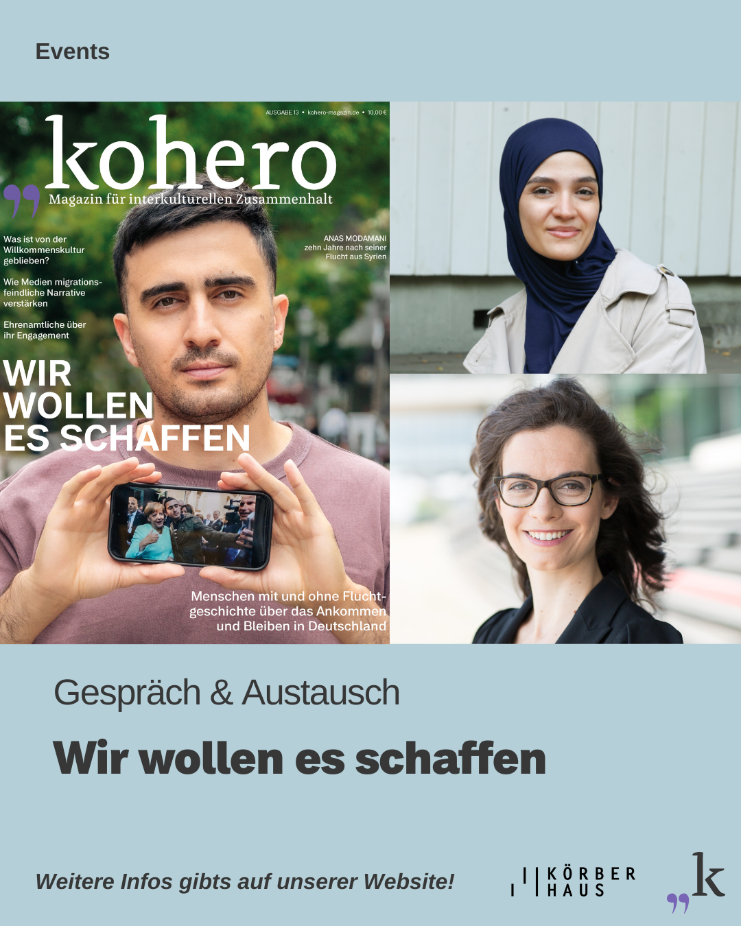 Die neue Ausgabe des kohero Hefts „Wir wollen es schaffen“ lässt Menschen zu Wort kommen, die geflüchtet sind oder sich für Geflüchtete engagieren. Es sind Geschichten vom Ankommen, Bleiben, von Herausforderungen und Zusammenhalt.